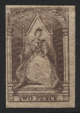 2d brownish-purple. Imperforate, 4 margins. Mint, large part original gum.