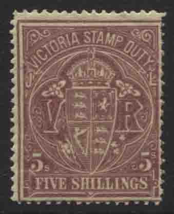 STAMP DUTY 5/- pale reddish-purple/lemon. Very fine,