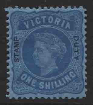 QV 1/- pale blue, ‘STAMP DUTY’ overprint in black.