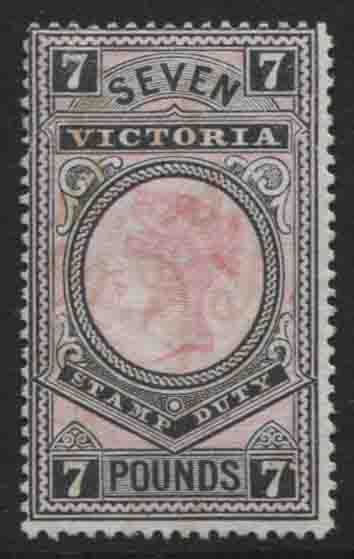 QV £7 rosine and black. Fine, fiscal usage, presentable example.