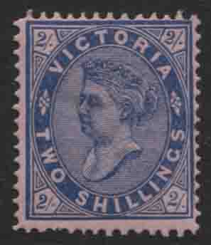 2/- blue on pink paper, without POSTAGE inscription. Fine, mint hinged.