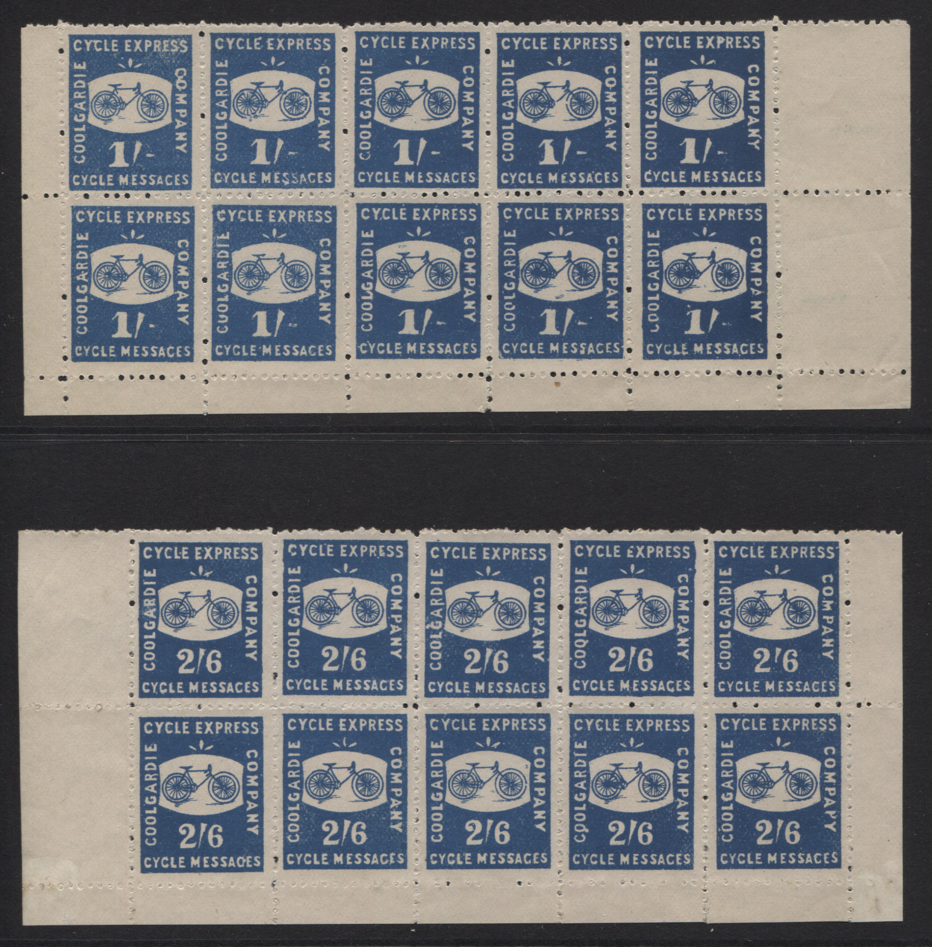 Coolgardie Cycle Express set of 2 in matching blocks of 10, from bottom of sheet. Unused (no gum).