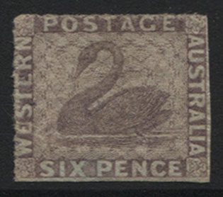6d purple on blued paper, very rough perf 14-16. Scissor cut on two sides to preserve design. Unused (no gum), tinniest of thins at left. (SG Cat £4,500).